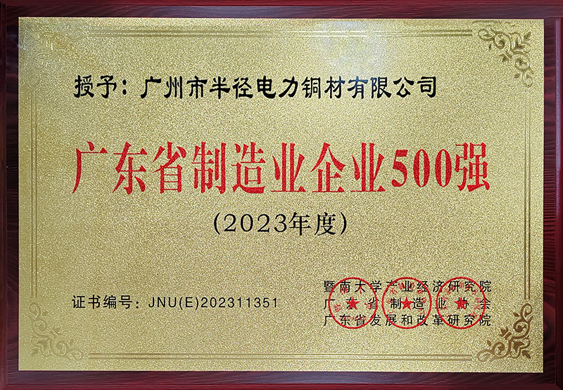 半徑連續(xù)12年榮登“廣東省制造業(yè)500強(qiáng)”榜單